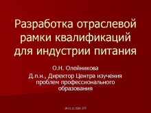 Разработка отраслевой рамки квалификаций для индустрии питания О