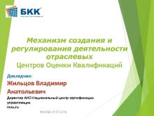 Механизм создания и регулирования деятельности отраслевых Центров Оценки