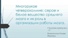 Многорукое четверохолмие серое и белое вещество среднего мозга
