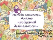 Методы психологии Анализ продуктов деятельности Выполнили Чубаева Влада