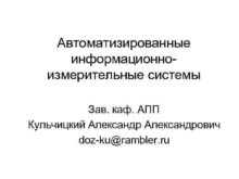 Автоматизированные информационно измерительные системы Зав каф АПП Кульчицкий