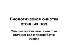 Биологическая очистка сточных вод Участие организмов в очистке