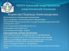 ГБПОУ Уренский индустриальноэнергетический техникум Борисова Надежда Александровна Преподаватель
