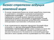 Бизнес-стратегии ведущих компаний мира В основе управления бизнесом