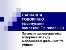 НАВЧАННЯ ГОВОРІННЮ формування компетенції в говорінні Загальна характеристика