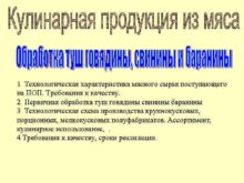 1 Технологическая характеристика мясного сырья поступающего на ПОП