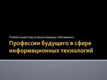 Презентацию подготовила команда Айтишники Профессии будущего в сфере