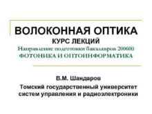 ВОЛОКОННАЯ ОПТИКА КУРС ЛЕКЦИЙ Направление подготовки бакалавров 200600