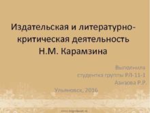 Издательская и литературнокритическая деятельность Н М Карамзина Выполнила