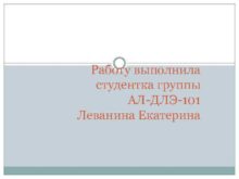 Работу выполнила студентка группы АЛ-ДЛЭ-101 Леванина Екатерина