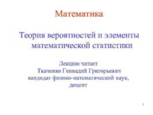 Математика Теория вероятностей и элементы математической статистики Лекцию