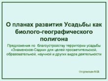 О планах развития Усадьбы как биолого-географического полигона Предложения
