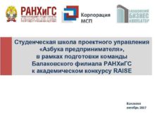 Студенческая школа проектного управления Азбука предпринимателя в