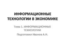 ИНФОРМАЦИОННЫЕ ТЕХНОЛОГИИ В ЭКОНОМИКЕ Тема 1 ИНФОРМАЦИОННЫЕ ТЕХНОЛОГИИ