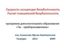 Сущность концепции безубыточности Расчет показателей безубыточности программа дополнительного