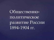 Общественнополитическое развитие России 1894 -1904 гг Единственной