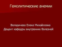 Гемолитические анемии Володичева Елена Михайловна Доцент кафедры внутренних