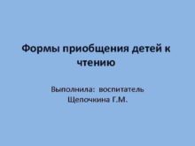 Формы приобщения детей к чтению Выполнила воспитатель Щепочкина