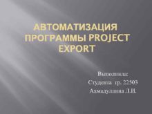 АВТОМАТИЗАЦИЯ ПРОГРАММЫ PROJECT EXPORT Выполнила Студента гр 22503