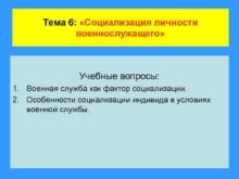 Тема 6 Социализация личности военнослужащего Учебные вопросы 1