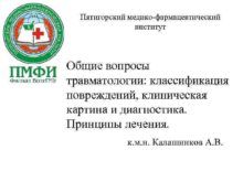 Пятигорский медико-фармацевтический институт Общие вопросы травматологии классификация повреждений