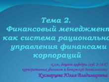 Тема 2 Финансовый менеджмент как система рационально управления