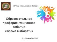 МАОУ Гимназия 31 Образовательное профориентационное событие Время