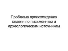 Проблема происхождения славян по письменным и археологическим источникам