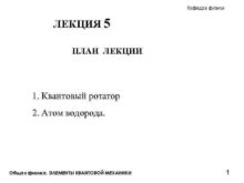 Кафедра физики ЛЕКЦИЯ 5 ПЛАН ЛЕКЦИИ 1 Квантовый