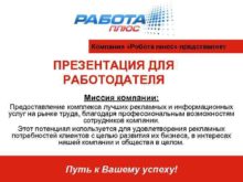 Компания Робота плюс представляет ПРЕЗЕНТАЦИЯ ДЛЯ РАБОТОДАТЕЛЯ Миссия