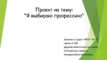Проект на тему Я выбираю профессию Выполнил студент