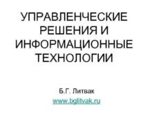 УПРАВЛЕНЧЕСКИЕ РЕШЕНИЯ И ИНФОРМАЦИОННЫЕ ТЕХНОЛОГИИ Б Г Литвак