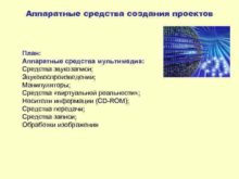 Аппаратные средства создания проектов План Аппаратные средства мультимедиа
