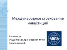 Международное страхование инвестиций Выполнила Студентка 1 ак гр