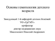 Основы гематологии детского возраста Заведующий 1 -й кафедрой