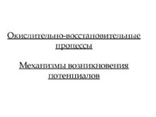 Окислительно-восстановительные процессы Механизмы возникновения потенциалов Процессы при