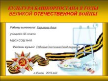 КУЛЬТУРА БАШКОРТОСТАНА В ГОДЫ ВЕЛИКОЙ ОТЕЧЕСТВЕННОЙ ВОЙНЫ Работу