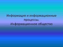 Информация и информационные процессы Информационное общество Определение
