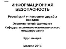 Лекция 1 ИНФОРМАЦИОННАЯ БЕЗОПАСНОСТЬ Российский университет дружбы народов