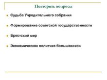 Повторить вопросы n Судьба Учредительного собрания n Формирование