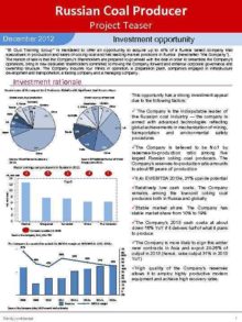 Russian Coal Producer Project Teaser December 2012 Investment