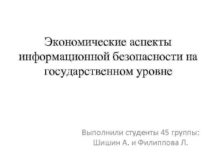 Экономические аспекты информационной безопасности на государственном уровне Выполнили