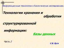Информационные технологии в биологических исследованиях Технологии хранения и