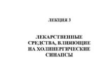ЛЕКЦИЯ 3 ЛЕКАРСТВЕННЫЕ СРЕДСТВА ВЛИЯЮЩИЕ НА ХОЛИНЕРГИЧЕСКИЕ СИНАПСЫ
