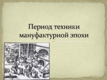 Период техники мануфактурной эпохи Мануфактура МАНУФАКТУРА от