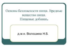 Основы безопасности пищи Вредные вещества пищи Пищевые добавки