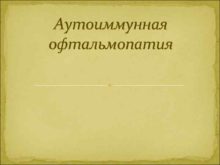 Аутоиммунная офтальмопатия Синонимы аутоиммунной офтальмопатии -эндокринная офтальмопатия