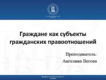 Граждане как субъекты гражданских правоотношений Преподаватель Ангелина Весова