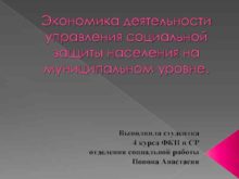 Экономика деятельности управления социальной защиты населения на муниципальном