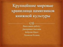 Крупнейшие мировые хранилища памятников книжной культуры работу Выполнили